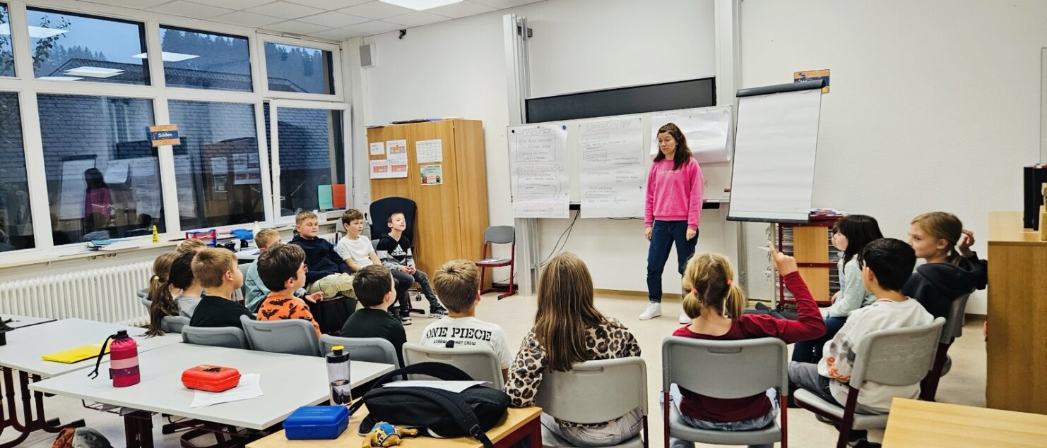 Kurz vor den Herbstferien nimmt die Klasse 3a an einem Sozialtraining unter der Leitung von Schulsozialarbeiterin Theresa Kuner teil. Dabei lernen die Kinder, respektvoll miteinander umzugehen, Konflikte friedlich zu lösen und als Team zusammenzuhalten.