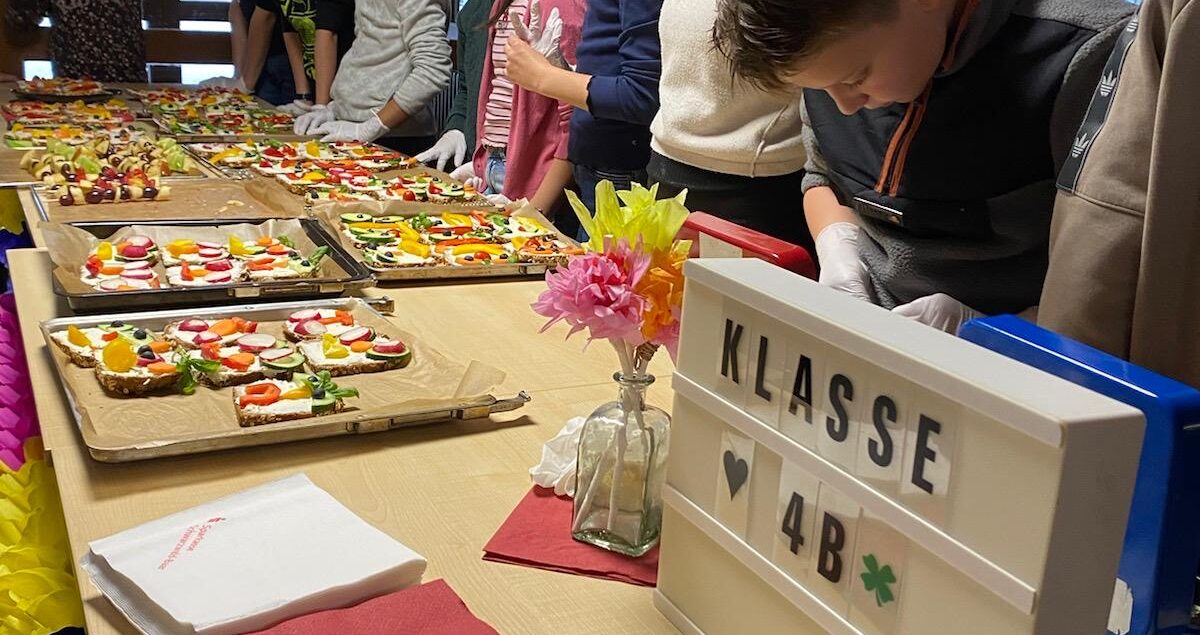 Die 4. Klasse hat sich im Unterricht mit dem Thema gesunde Ernährung auseinandergesetzt. Bei der Aktion „gesundes Pausenbrot“ konnten sie auch auf praktische Weise unseren Schülerinnen und Schülern ein gesundes Pausenbrot näherbringen.