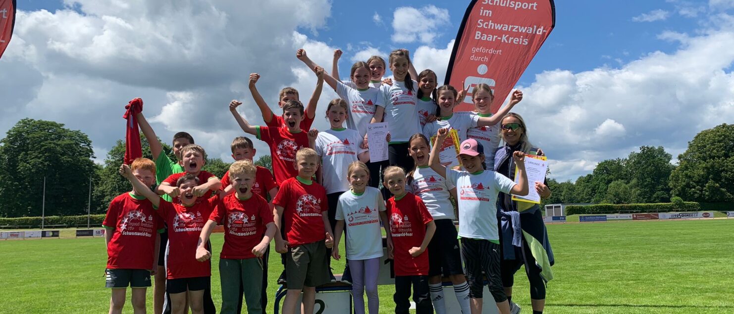 Beim Kreisfinale der Leichtathletik in Donaueschingen zeigten die beiden Teams der Dom-Clemente-Schule ihr Können. Die Schülerinnen und Schüler wuchsen beim Wettkampf über sich hinaus und zeigten in den Disziplinen Weitsprung, Sprint und Heuler-Weitwurf überragende Leistungen. Auch im direkten Vergleich der Staffeln konnten sie überzeugen und die starke Konkurrenz hinter sich lassen. Bei der Siegerehrung war die Freude über Platz eins der Mädchen und Platz zwei der Jungen riesig. Die Mädchen werden nun zum Finale des Regierungspräsidiums Freiburg reisen und den Schwarzwald-Baar-Kreis vertreten.