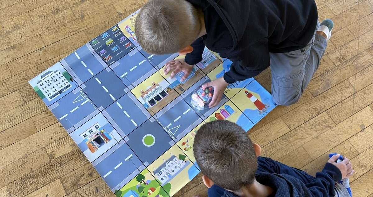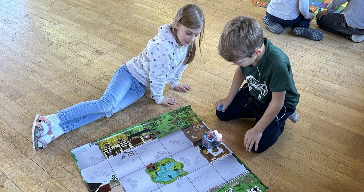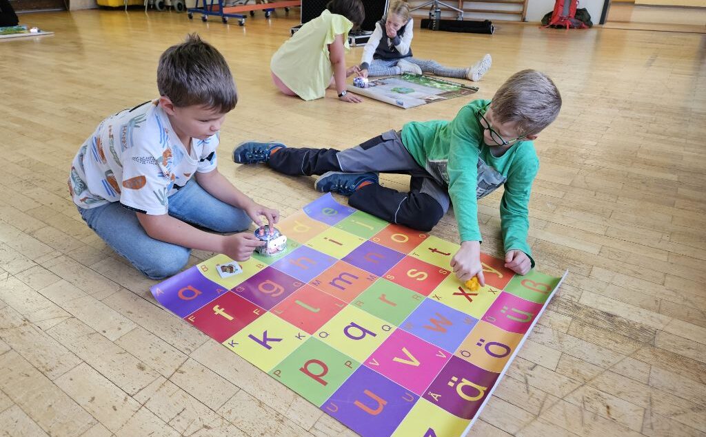 Nachdem die Kinder der Klassen 1 bis 4 zuerst ihre Mitschüler „programmierten“, wurde das Ganze auf kleine Roboter übertragen. Es galt ein paar Regeln zu beachten, damit jeder einzelne Roboter genau das tat, was erwartet wurde. Nach kurzer Zeit gelang es allen Schülern, Befehle gezielt zu geben und dabei den Perspektivenwechsel zu vollziehen.
