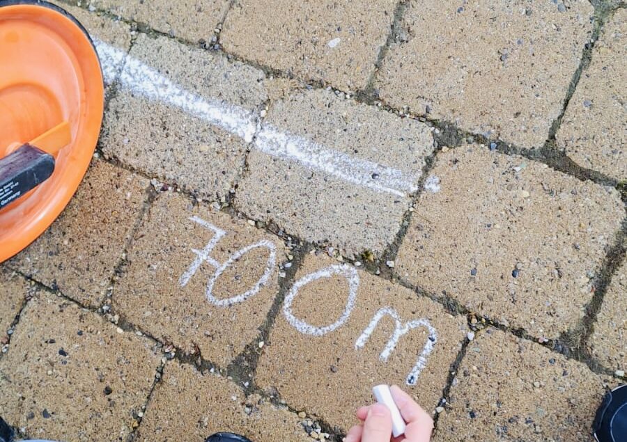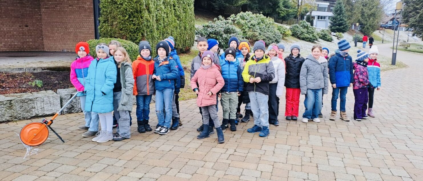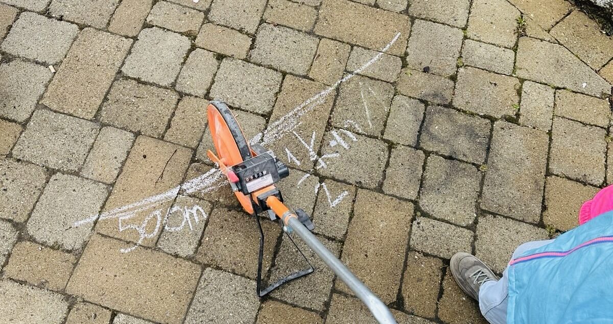 Die Kinder der Klasse 3 entdeckten mit einem Messrad, wie lang ein Kilometer ist.