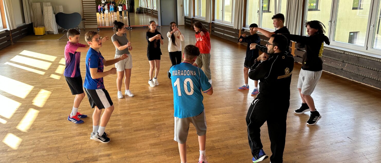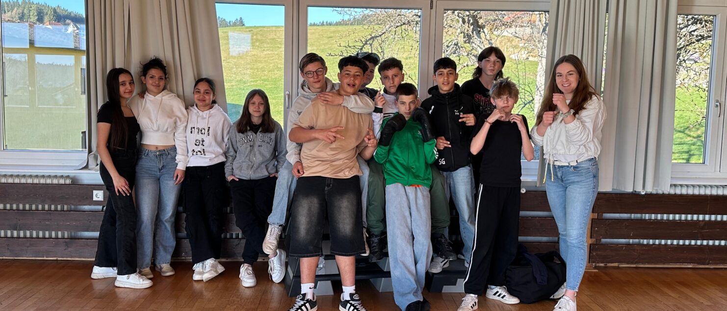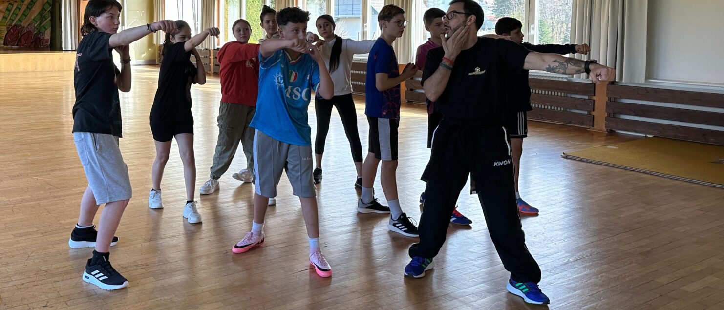 Im Rahmen eines praxisorientierten Workshops besuchte der erfahrene Kampfsporttrainer Leonardo Telesca, von der Kampfsportschule St. Georgen, die Dom-Clemente-Schule in Schonach. In zwei Trainingseinheiten führte er die Schülerinnen und Schüler der 7. Klasse in die Grundlagen der Selbstverteidigung ein.