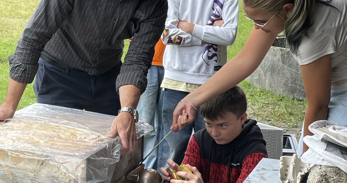 Ganz besonders spannend: Die Kinder konnten mithelfen, Waben zu entnehmen – und sogar frischen Honig direkt aus der Wabe probieren. Ein echtes Highlight! Herr Kimmig nahm sich viel Zeit, um alle Fragen zu beantworten und erklärte anschaulich, wie ein Bienenvolk aufgebaut ist, welche Aufgaben die einzelnen Bienen übernehmen und warum Bienen für unser Ökosystem so wichtig sind.