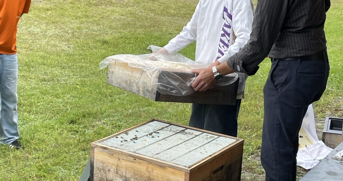 Gemeinsam mit Herrn Kimmig tauchten die Schülerinnen und Schüler in die faszinierende Welt der Honigbienen ein. Dabei konnten sie live miterleben, wie ein Imker arbeitet: Sie durften die Bienenkästen öffnen, beobachten, wie die Bienen gefüttert werden, und erfuhren, wie wichtig der Einsatz des Räuchers ist, um die Tiere bei der Arbeit zu beruhigen.