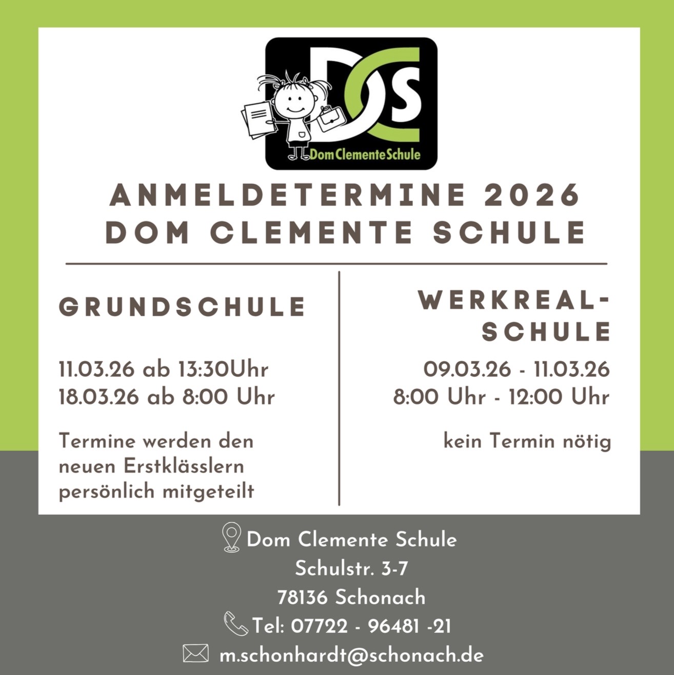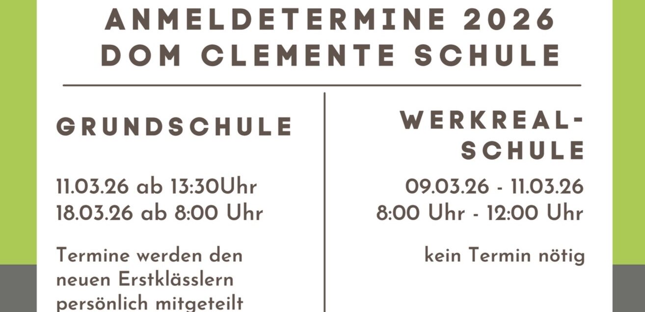 Anmeldetermine 2026 Dom Clemente Schule