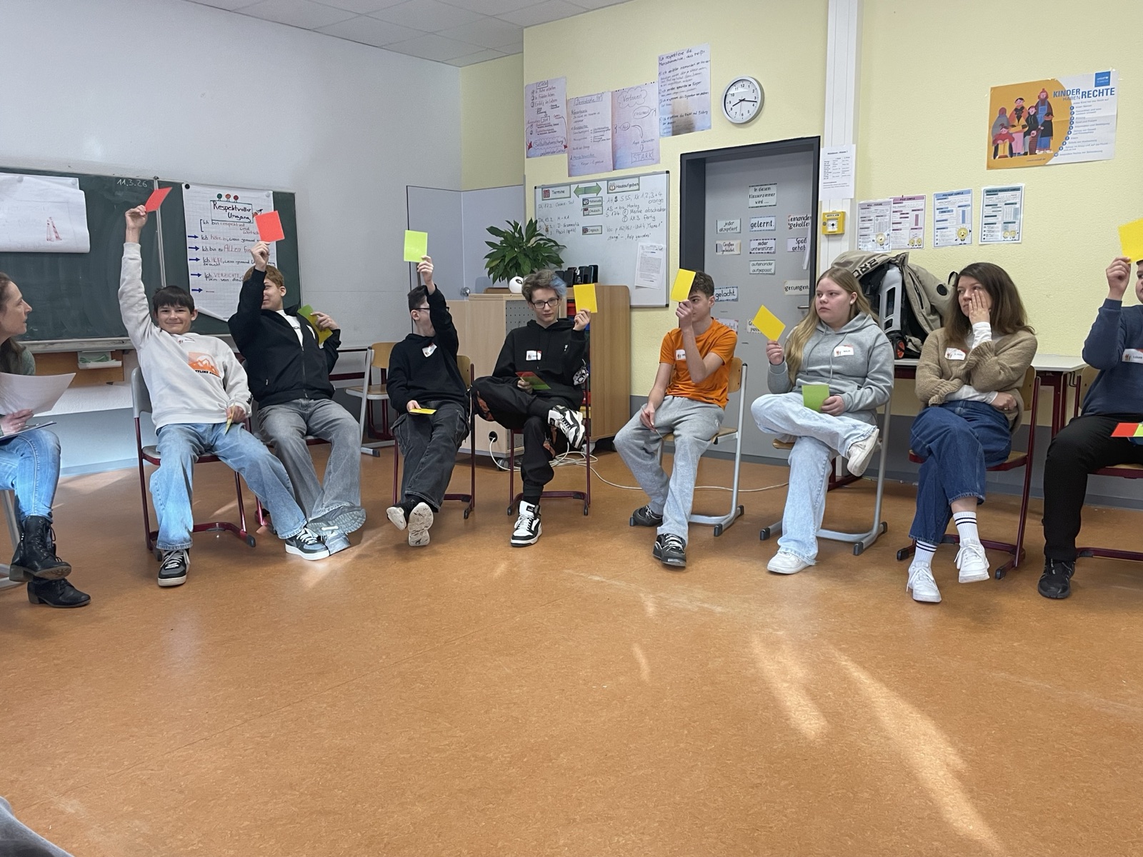 Besonders wichtig war dabei die Frage, was jeder Einzelne tun kann, um Mobbing zu verhindern. Die Schülerinnen und Schüler entwickelten gemeinsam Ideen, wie sie im Schulalltag aufmerksam sein, Betroffene unterstützen und respektvoll miteinander umgehen können.