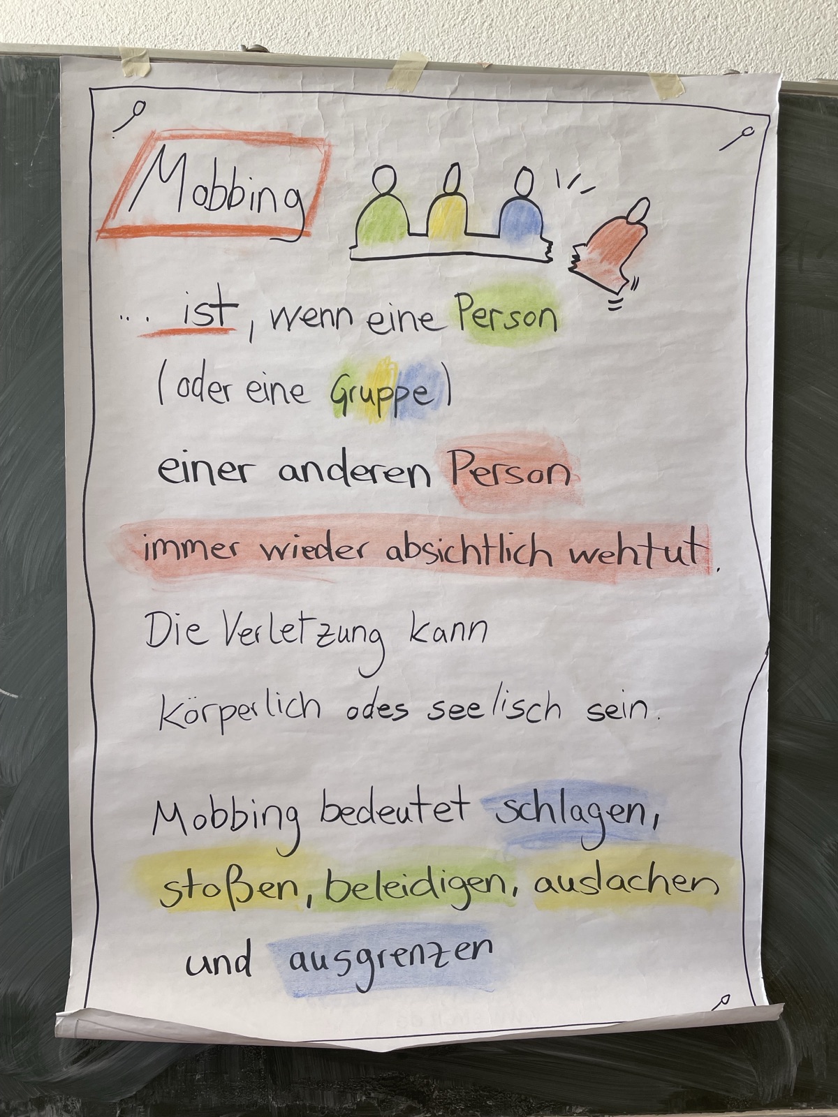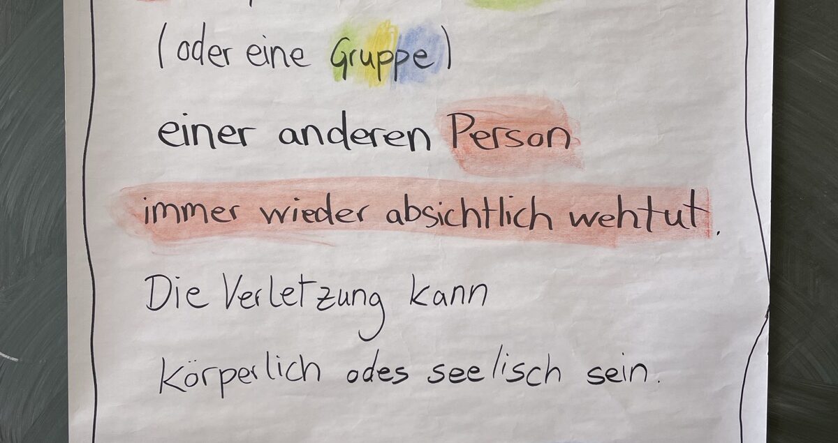 Wie fühlt sich Mobbing an? Warum ist es für Betroffene oft so schwer, sich Hilfe zu holen? Und was können wir alle tun, damit Mobbing gar nicht erst entsteht? Mit diesen wichtigen Fragen beschäftigten sich die Schülerinnen und Schüler der 7. Klasse im Rahmen einer Mobbingprävention.