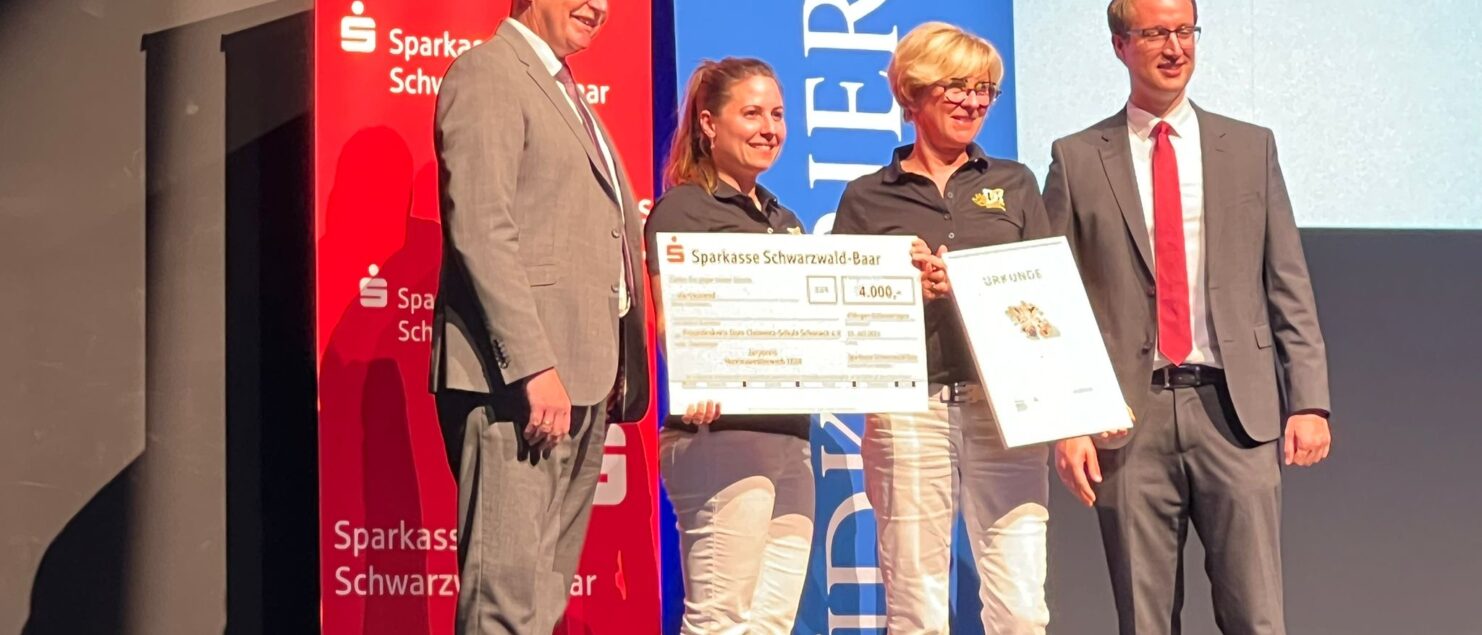 Die Übergabe des Gewinns fand in einem stilvollen Ambiente bei einer Preisverleihungsgala in der Neuen Tonhalle in Villingen statt. Acts wie die Ropeskipper aus Villingen und turnerisches Können vom TV Schonach lockerten die Veranstaltung auf. Die Freude war groß, als Silke Burger, 1. Vorsitzende, und Caren Ottl, 2. Vorsitzende des Vorstandes, den Preis feierlich entgegennahmen. Gemeinsam mit Vertretern des Freundeskreises, darunter Verena Hahn und Corinna Kienzler, sowie Elternbeiräten wie Mario Kaiser, Bianca Kienzler, Heiko Schwer und Christoph Makowe waren auch Doreen Vögele und Sarah Schmidt von den Mountainbike Freunden Schonach sowie die Kooperationslehrerin Verena Fahl anwesend, die die langjährige Zusammenarbeit zwischen Lehrerschaft und Freundeskreis betreut.