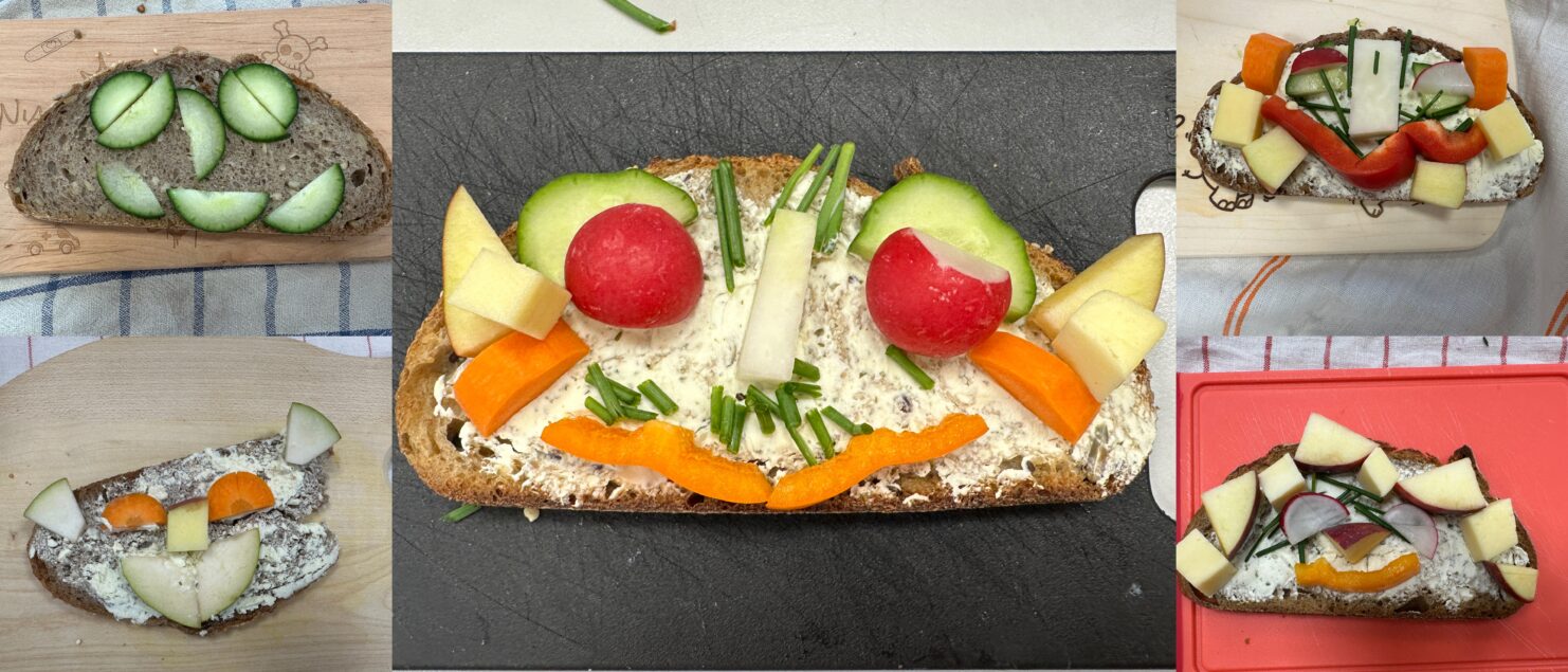 Das absolute Highlight des Tages war das Gestalten der eigenen gesunden Brotgesichter. Mit frischem Obst und Gemüse, Aufstrichen und Brot durften die Kinder kreative und bunte Gesichter legen und diese anschließend natürlich auch essen. Dabei machten viele eine tolle Erfahrung: Einige probierten Lebensmittel, von denen sie vorher dachten, dass sie ihnen nicht schmecken oder welche sie nicht gekannt haben und waren dann positiv überrascht.