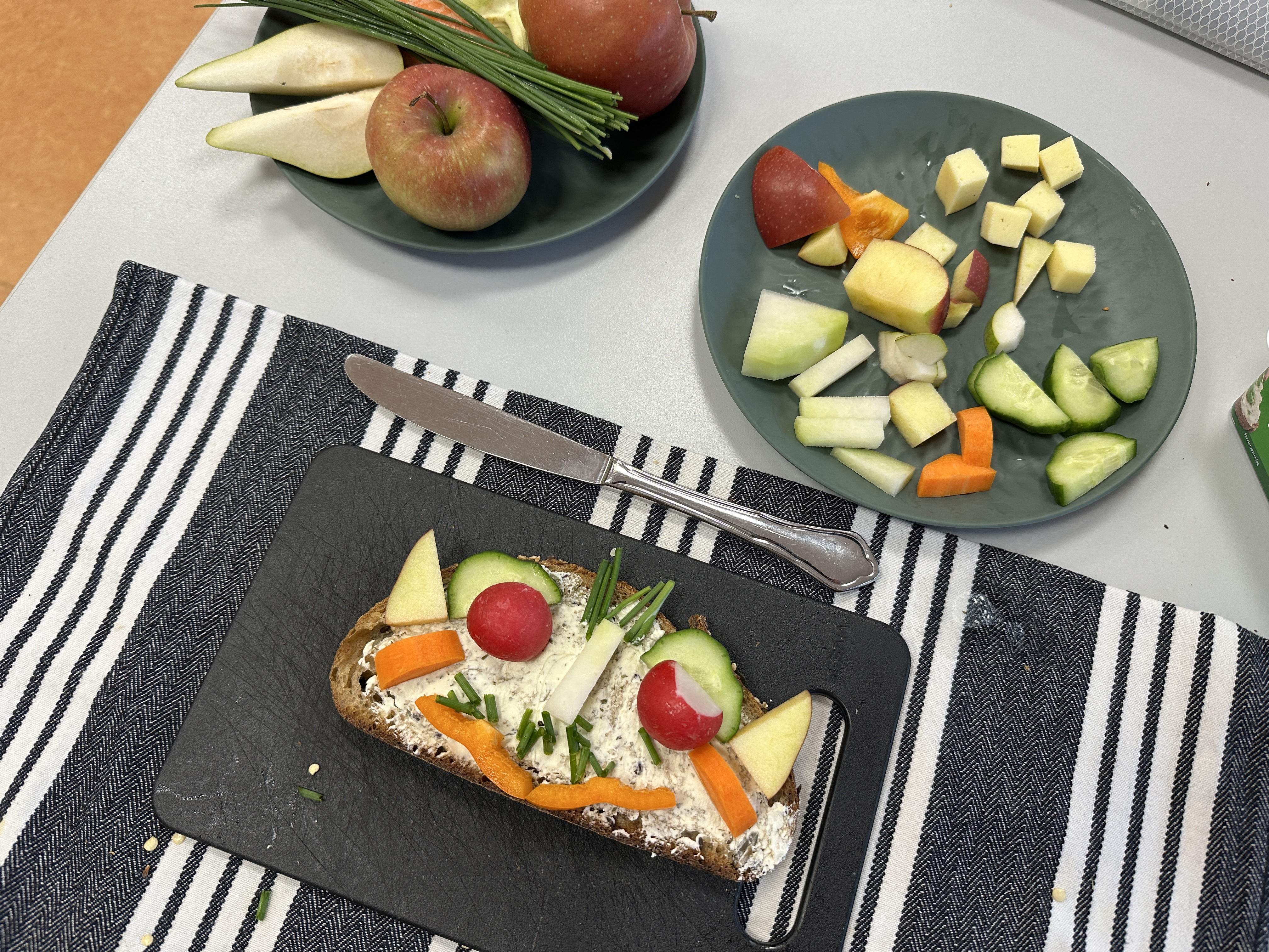 Das absolute Highlight des Tages war das Gestalten der eigenen gesunden Brotgesichter. Mit frischem Obst und Gemüse, Aufstrichen und Brot durften die Kinder kreative und bunte Gesichter legen und diese anschließend natürlich auch essen. Dabei machten viele eine tolle Erfahrung: Einige probierten Lebensmittel, von denen sie vorher dachten, dass sie ihnen nicht schmecken oder welche sie nicht gekannt haben und waren dann positiv überrascht.