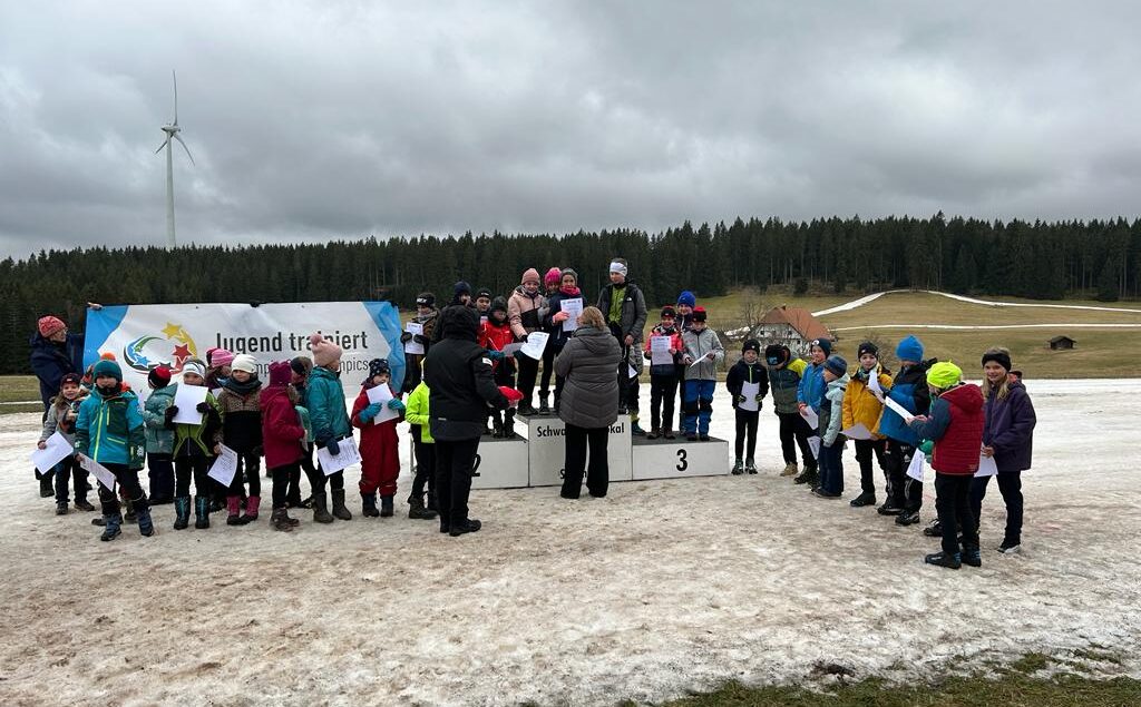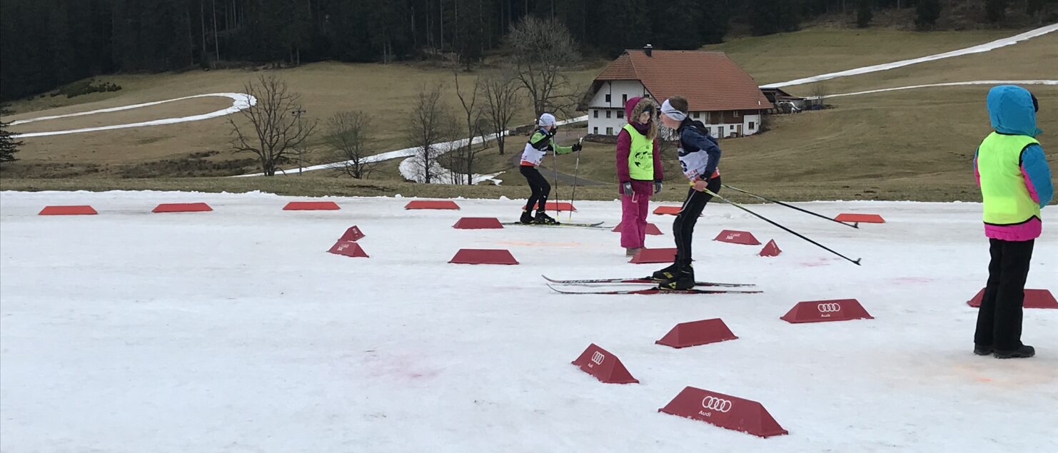 Dieses Jahr fand das Kreisfinale nach langer Pause wieder einmal in Schonach statt. 9 Teams aus verschiedenen Grundschulen gingen auf die Loipe und zeigten ihr Können auf den Skiern in einem Hindernisparcour. Die jungen Sportlerinnen und Sportler hatten trotz des bescheidenen Wetters sehr viel Spaß am gemeinsamen Wettkampf. Die Freude über den Heimsieg der Dom Clemente Schule war groß!
