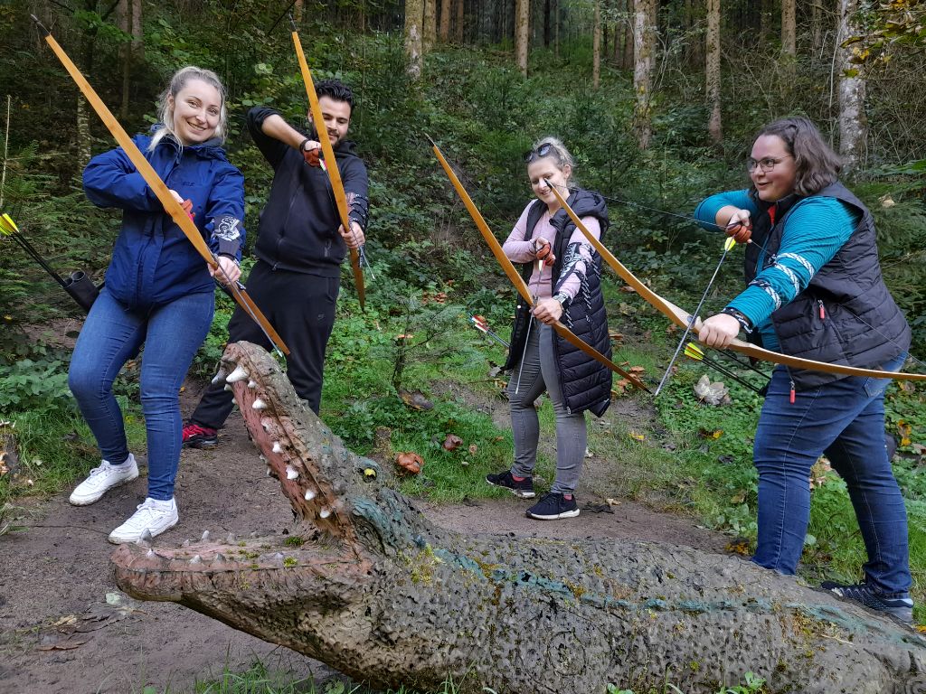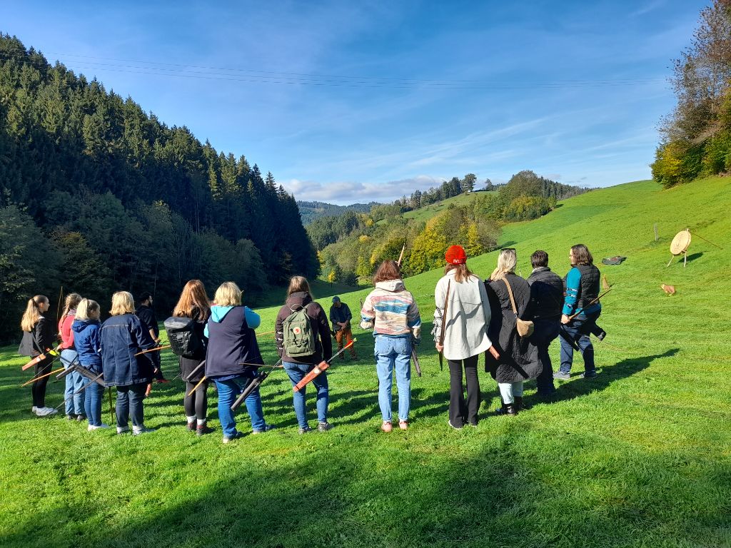 Direkt nach Unterrichtsende um 12:05 Uhr startete der Lehrerausflug nach Büchern. Dort wurde zunächst gemeinsam gevespert – gestärkt und in bester Stimmung ging es anschließend an Pfeil und Bogen. Nach einer kurzen Einführung ins Bogenschießen durfte jede und jeder das eigene Können unter Beweis stellen. Mit jedem Schuss wurden die Treffer sicherer, das Lachen lauter und die Stimmung immer besser.